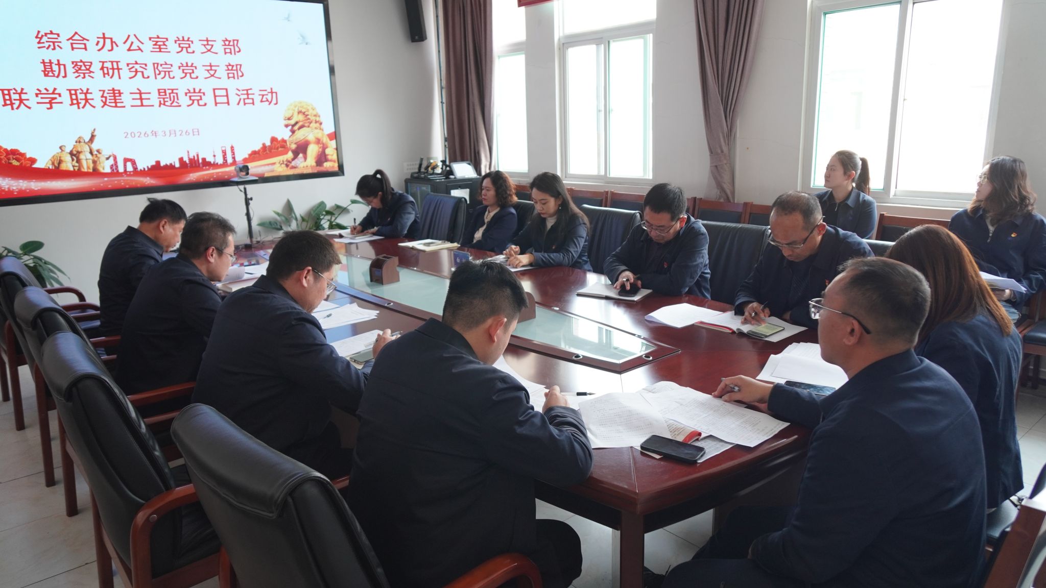 为深入开展树立和践行正确政绩观学习教育,推动党建工作与业务发展深度融合,3月26日,山西省建科院集团公司综合办公室党支部与勘察研究院党支部联合开展“党建引领聚合力 工地一线促发展”联学联建主题党日活动。集团公司总经理助理白帆到会指导,两个党支部全体党员及入党积极分子参加活动。