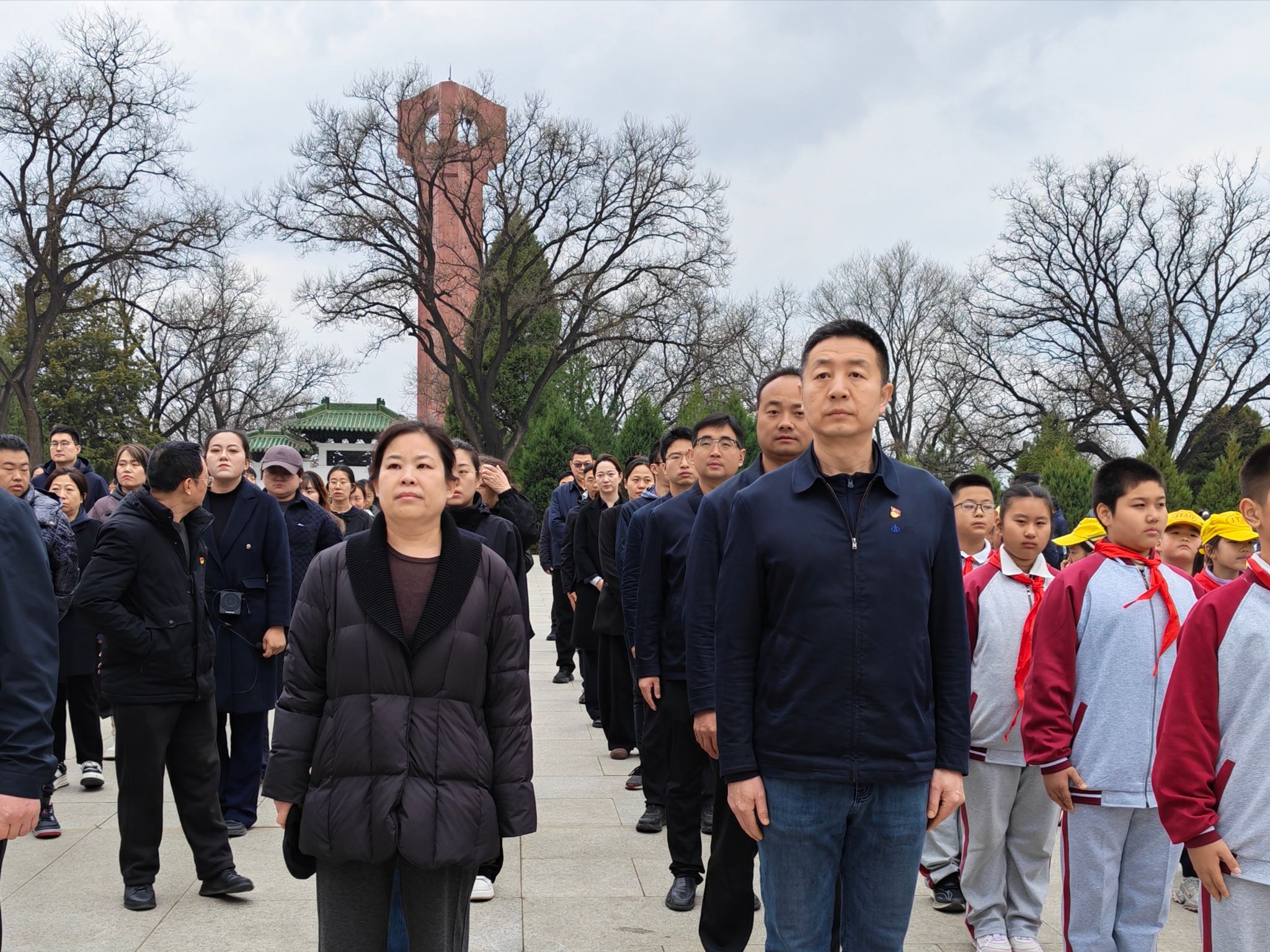 上午8时30分,嘹亮的《义勇军进行曲》响彻陵园,全场人员齐声高唱中华人民共和国国歌,铿锵歌声寄托着对祖国的赤诚与对先烈的缅怀。国歌唱毕,全体人员向英勇牺牲的革命烈士鞠躬默哀,表达对他们的无限追思与崇高敬意。随后,参与人员向烈士敬献花篮,将带着思念的鲜花,献给为民族解放事业英勇献身的革命先辈。