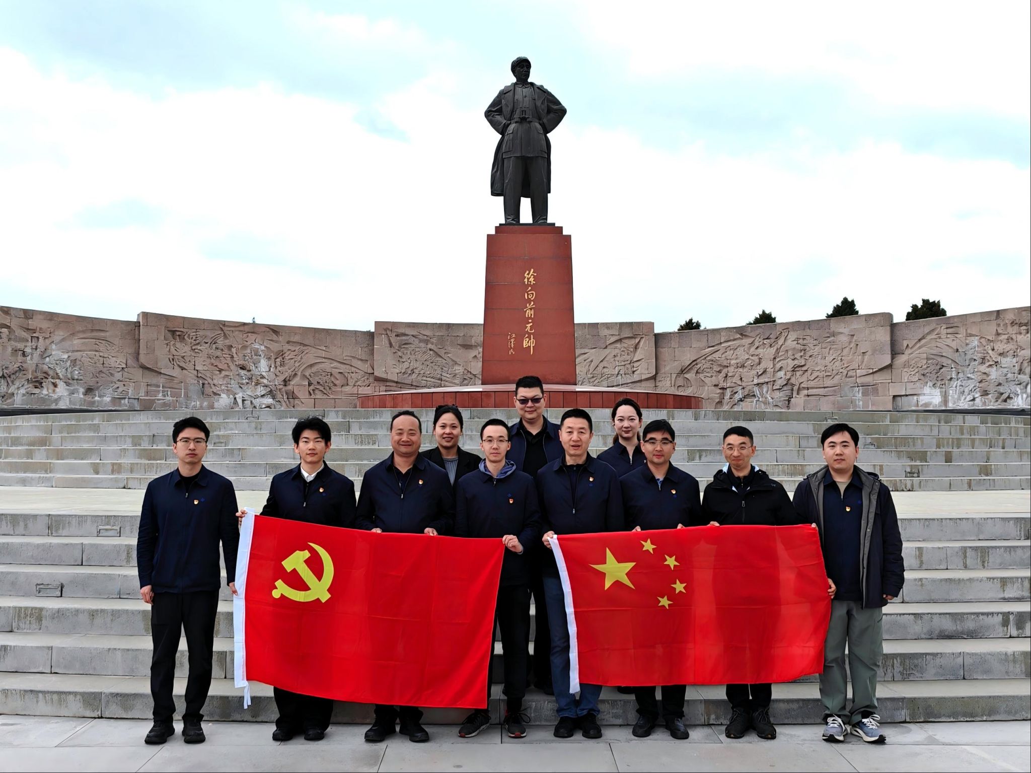 低碳建筑实验室党支部党员在徐向前元帅雕像前肃立瞻仰并合影留念