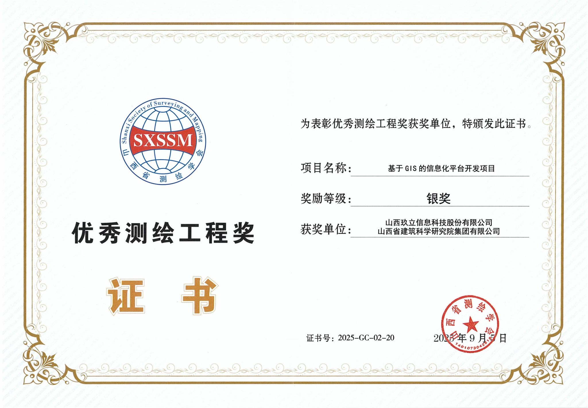 近日,我单位凭借卓越的技术实力和良好的市场口碑,成功斩获山西省优秀测绘地理信息工程奖二等奖、山西省优秀测绘工程奖银奖、山西省优秀工程勘察三等项目,荣获山西省测绘地理信息行业“诚信单位”称号。